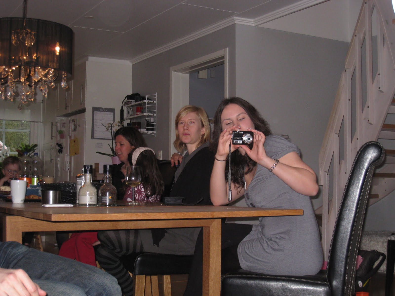 Lördag: mamsen kom ner från Värmlandsskogarna och tillsammans med tjocka släkten åkte vi hem till moster och firade hennes 40-års dag. Där bjöds det på fantastisk mat, farligt gott vin, tårta, bullar, kakor och världens bästa sällskap! Hade det inte varit för att Andy blev dålig hade vi nog stannat ett tag till. När barnen var i säng dök finaste Anna upp på några glas rött och dessutom fick vi spontanbesök av Catrin och hennes man. Det blev en liten tur ner på stan för ytterligare ett glas sen, men för min del blev det en kort visit så jag var i säng rätt tidigt. Men en mycket trevlig lördag alltså!